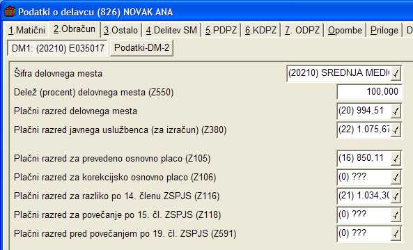 Ta dva plačna razreda sta že nekaj časa namenjena avtomatskemu izračunu skupne razlike za odpravo nesorazmerja. Kdor tega podatka nima vnešenega mora ob spremembi deleža zaposlitve na delovnem mestu ali spremembi vrednosti plačnih razredov ročno preračunati Z107 (DZ35) in vnesti v program! Zato priporočamo vnos vseh potrebnih plačnih razredov. Seveda potem preverite pravilnost izračunanih podatkov!