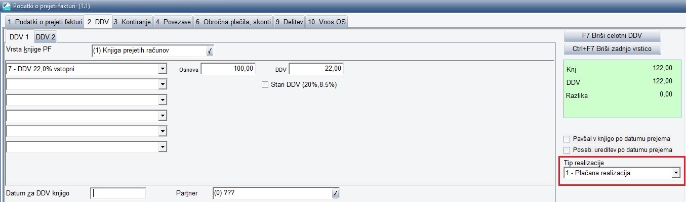 Novost urejena tudi v programu Knjiga prejetih faktur. Vsebinsko enako kot v programu Glavna knjiga (glej spodnje objave), na drugi poziciji se nahaja zgolj podatek Tip realizacije. Glej spodnjo sliko: